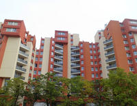 D’après la légende, un trésor se trouve toujours au pied d’un arc-en-ciel. Et c’est vrai, nous l’avons trouvé et il est magnifique… Il s’agit de notre quartier : les Pyramides, à Évry. Quand le soleil revient après la pluie et éclaire de sa lumière ces immeubles ocre et crème, cela nous fait penser à des falaises plongeant dans un lac où elles se reflètent. D’ailleurs, à ce moment, nous ne savons plus bien si l’eau qui remplit le bassin vient du ciel ou des stalagmites bleues, ces geysers de béton et d’époxy qui se trouvent à côté des marches où nous nous asseyons pour parler. Avec ces arbres tout proches et l’immeuble en forme de pyramide d’où nous prenons la photographie, on se croirait alors au bord d’une oasis. Un havre de paix dans notre quartier. Cette place des Miroirs, avec ses graffitis sur ses murs, voit le temps s’écouler doucement à l’image de ce bus qui passe et nous transporte ailleurs.
