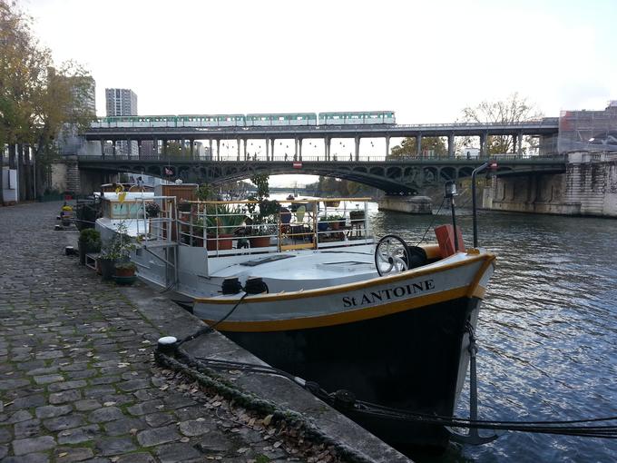 Le calme à quelques mètres de la ville bruyante. En descendant quelques marches, en s'éloignant un peu des touristes, on peut se promener au calme à côté de jolies péniches. J'imagine la vie de ceux qui habitent sur l'eau. J'imagine de partir sur une de ces péniches pour remonter la Seine jusqu'à la Manche. Seuls le métro et les grandes tours nous rappellent qu'on est à Paris.