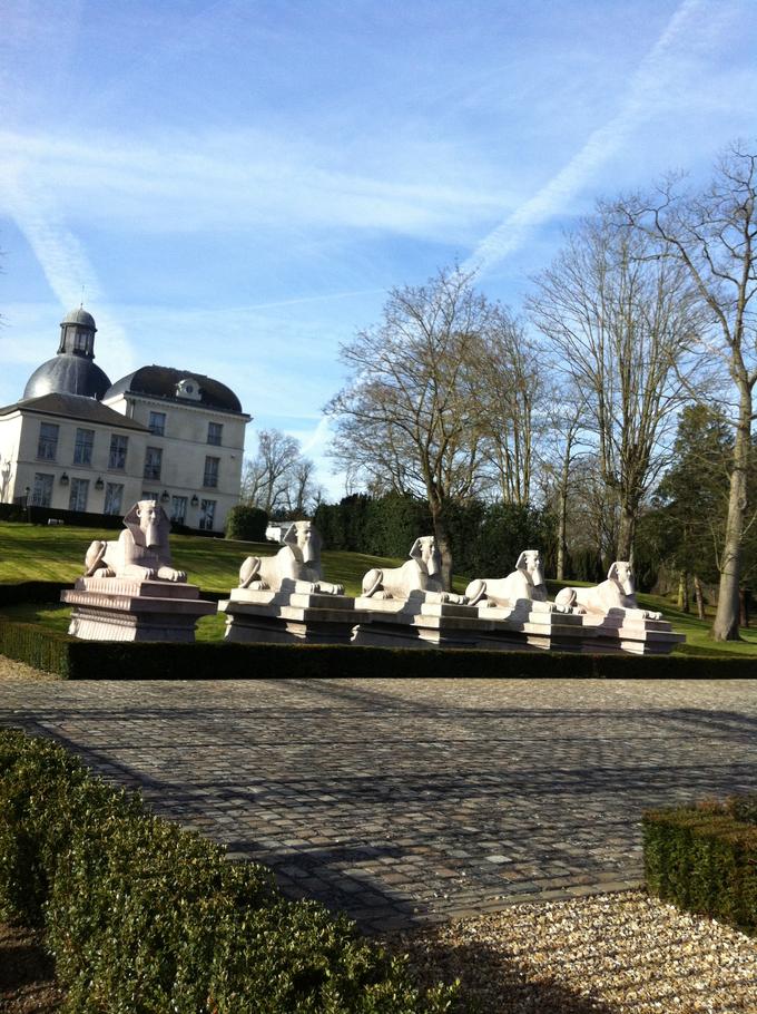 Dans une petite ville nommée Marly-le-Roi, nous gardons le château protégé par de majestueuses chimères ; mais nous ne sommes plus que deux sphinx à être d’origine.