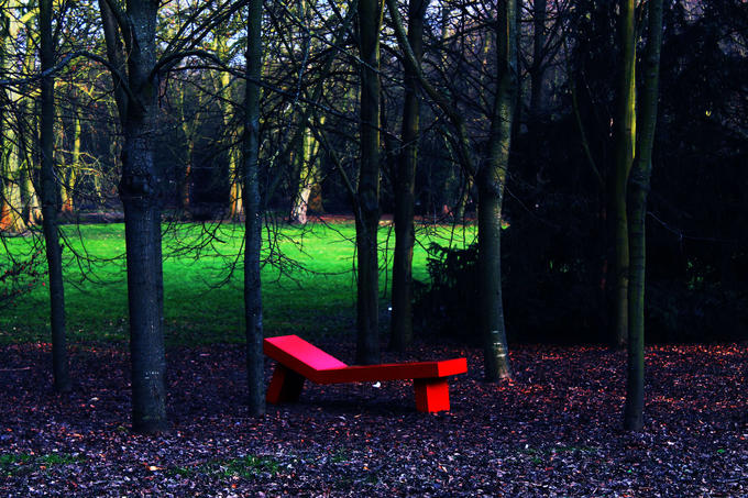 Quand l'homme se permet d'occuper les lieux, ce n'est pas toujours pour détruire, cacher, abimer, construire. Quelquefois, c'est pour sublimer. Le contemporain réveille, interpelle ce lieu d'antan, ce banc, c'est comme une rayure sur le paysage, mais une belle, qui fait signe telle une flèche à poursuivre l'exploration, qui invite à faire une pause pour contempler, qui fait aller le regard vers lui comme pour nous dire, "regarde à cet endroit précis, c'est particulièrement joli".