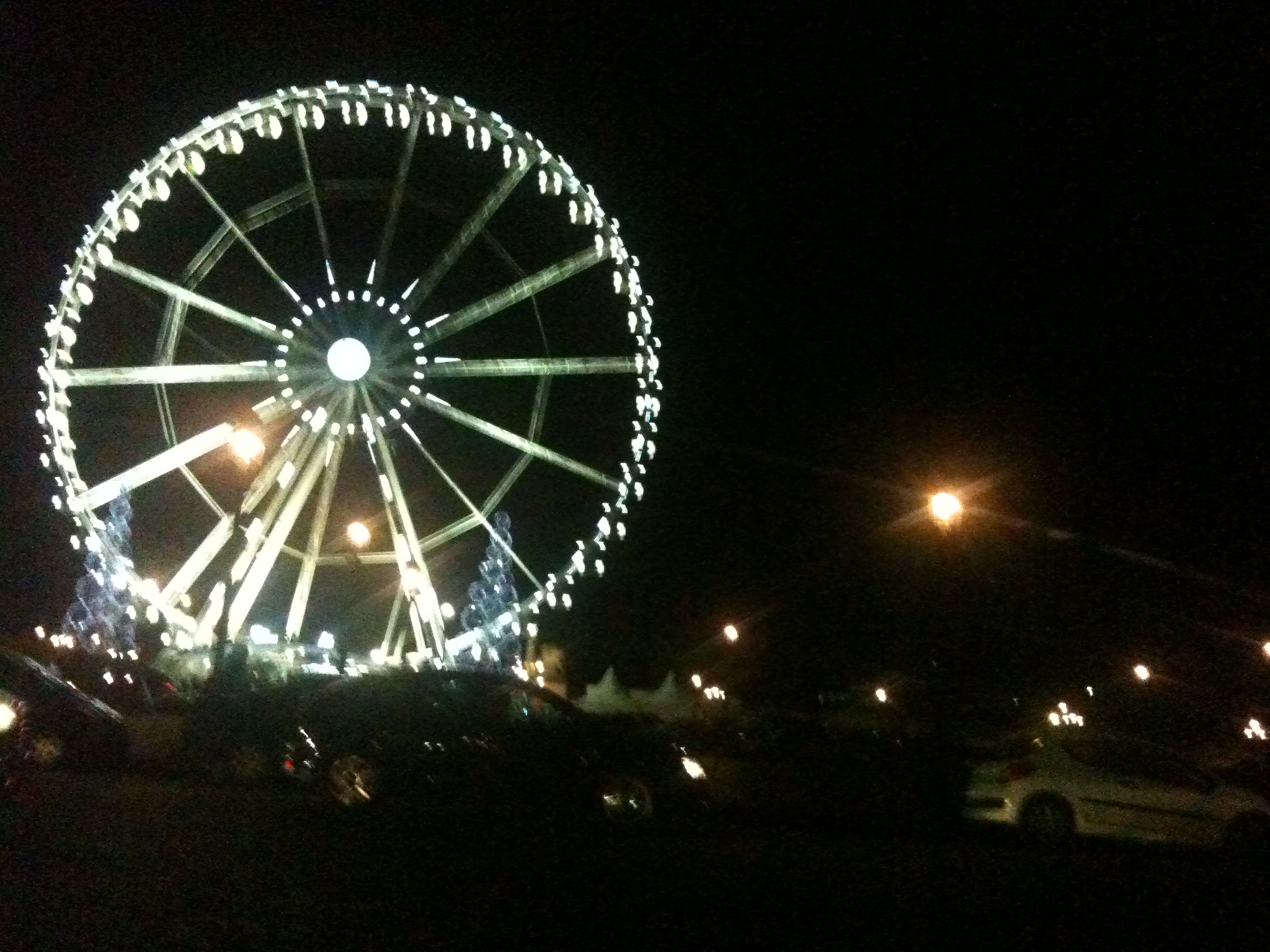 La grande roue est située au pied du jardin des tuileries, face à la place de la concorde où se trouve l’obélisque. Elle n'est en place que quelque temps, les semaines avant et après les fêtes. Elle domine Paris et illumine la nuit de mille feux. On dirait la roue d'un char géant qui tourne doucement. Où va-t-elle ? Où nous emmène-t-elle ? Tout simplement vers Noël.