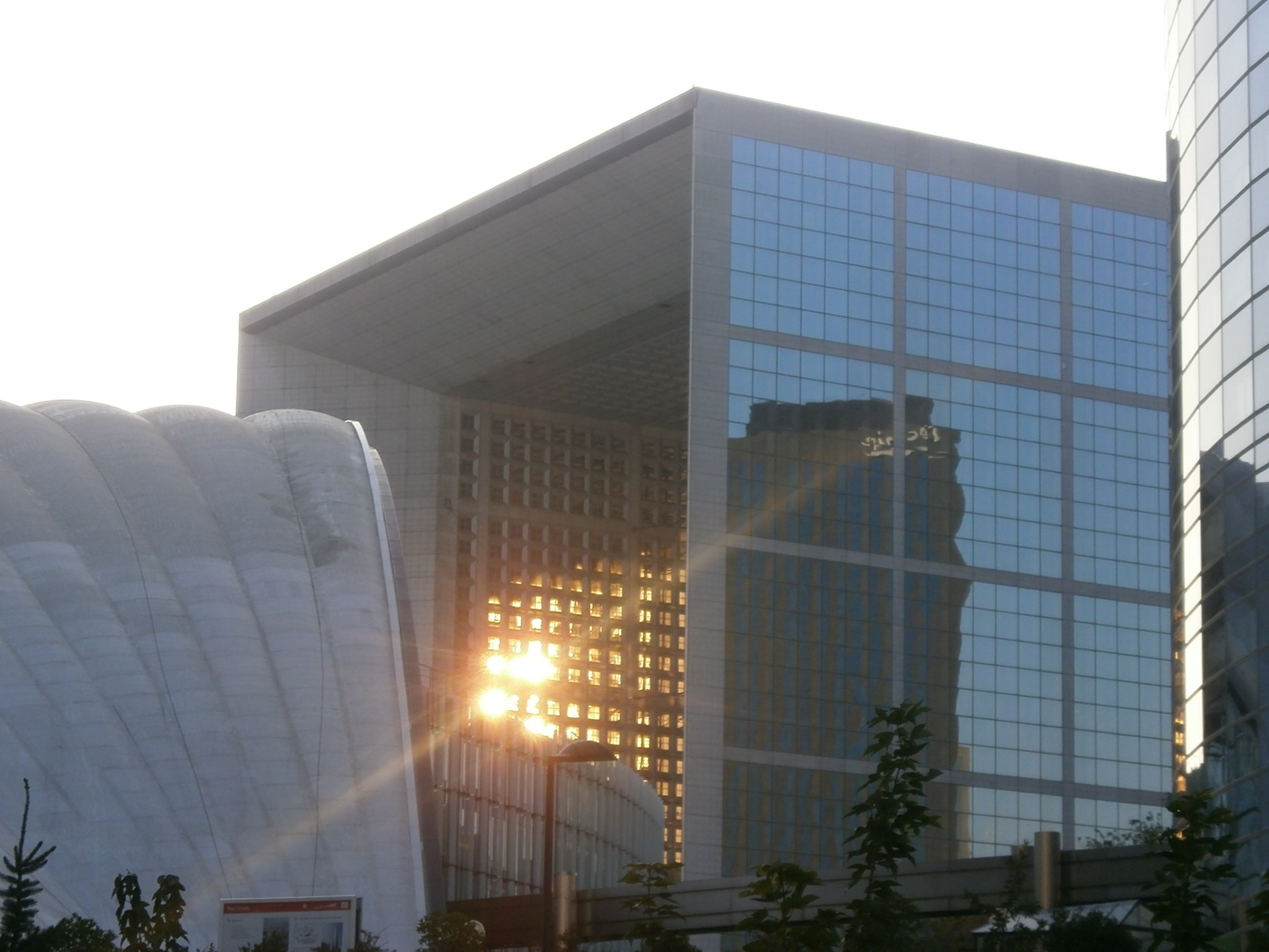 J’ai choisi le thème la ville. Je me suis intéressé aux constructions de la Défense et j’ai fait une photo de la Grande Arche car cela m’inspire beaucoup. J’aime cette architecture qui est différente de celle des tours qui l’entourent. J’ai fait en sorte que ma photo capte un reflet du soleil couchant sur l’arche. Je l’ai prise de profil pour pouvoir voir les côtés de l’arche avec des reflets sur le côté dans l’ombre, et le soleil qui traverse l’autre côté. La lumière met en valeur cette construction qui symbolise la ville de Courbevoie.