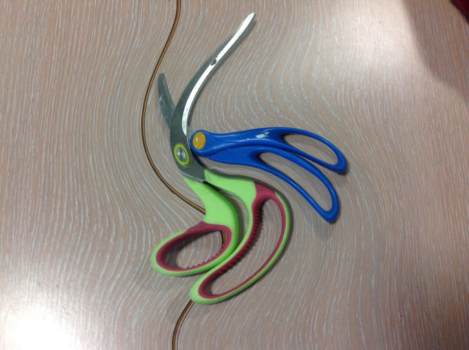 Ces ciseaux sont dansants car nous avons l'impression qu’ils forment un couple qui danse le tango. Le ciseau bleu est l'homme et le ciseau vert, la femme souple qui se crambe et ondule. Grâce à notre photomontage, nos instruments deviennent objet d’art. Nous pouvons croire que les ciseaux ont des membres et des articulations comme des êtres humains ; nous imaginons qu’ils prennent vie la nuit lorsque nous ne sommes plus en classe, et qu’ils font la fête aux sons de notes venues d’Argentine, avant de retrouver leur usage entre nos mains en cours.
