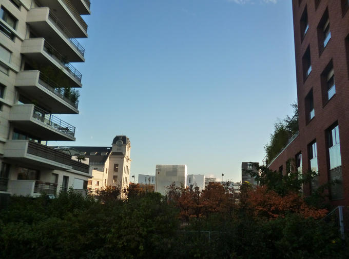 J’ai choisi de montrer cette image parce que j’aime les bâtiments et la lumière des reflets sur eux. Ainsi que le ciel sans nuages. J’ai pris cette photo dans le quartier du XIIIe arrondissement, le nouveau quartier de Paris. On y voit les anciens moulins de Paris qui maintenant sont l’université Paris Diderot qui accueille tous les jours des milliers d’étudiants. J’habite à côté, il y a plein de couleurs et c’est joli. Il y a un bâtiment qui crache de la fumée, c’est l’incinérateur qui brûle une grande partie des poubelles de Paris. Apolline