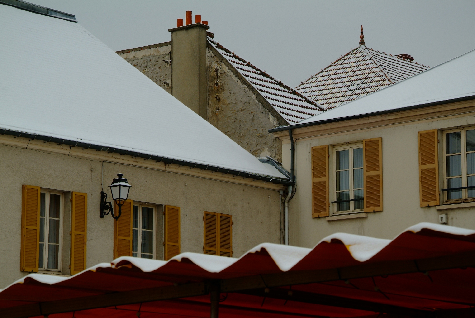 À la fois courbes, à la fois lignes droites, la ville est tout en géométrie. Chaque forme y trouve sa place, chaque couleur, texture, décor. Adaptées au quotidien, on ne les remarque plus. L’ondulation d’une bâche, les tuiles régulières d’un toit, les volets peints, tous sont redessinés, surlignés, remarquables une fois la neige tombée. La neige leur redonne vie, leur confère de l’importance. On ouvre doucement les yeux à cette nouvelle architecture dont on a pourtant l’habitude, mais qui semble alors si différente qu’on ne peut s’empêcher de la contempler. Enneigée, la ville nous dévoile triangles, rectangles, vagues, cylindres, pyramides… tous chefs d’œuvre d’architecture.