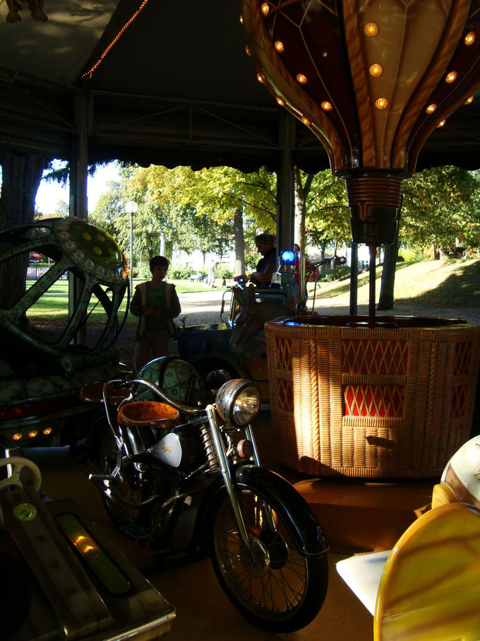 On peut lui faire confiance, 365 jours sur 365 il attend les enfants. Tous les hivers, il clignote dans la nuit, tous les étés, il tinte dans la soirée. Qu’il pleuve, qu’il neige, qu’il vente, il héberge un marsupilami dont la queue passe de main en main, d’enfant en enfant, depuis des générations qui, toutes ébahies, gagnent des tours gratuits. C’est un lieu sacré face auquel j’ai emménagé en arrivant dans cette ville. C’est un lieu que j’ai convoité comme le convoiteront mes enfants. (En souvenir de la moto !).