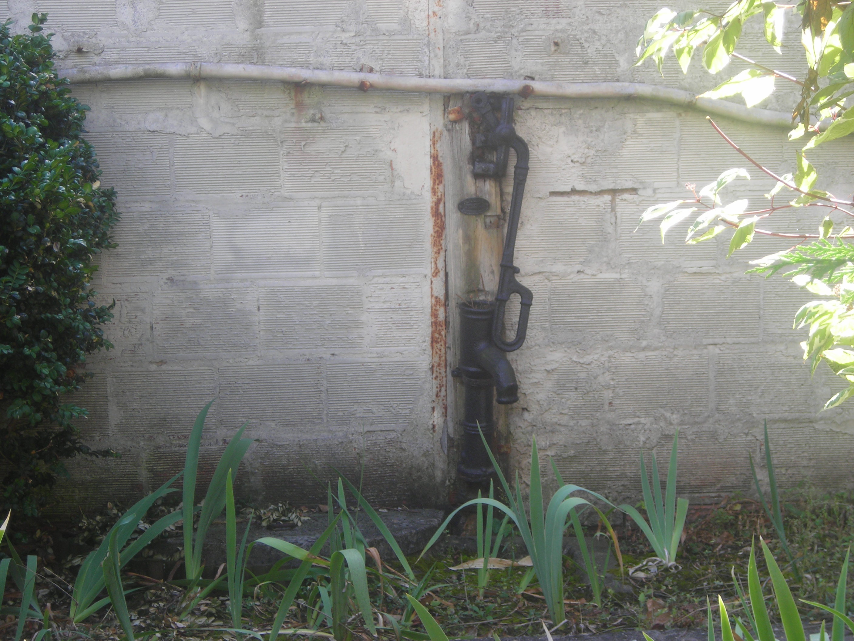 Cette photographie représente l’ancienne pompe à eau qu’utilisaient les habitants de Bois-Colombes lorsque l’eau courante n’existait pas. Elle est située dans le jardin d’un immeuble privé, au 17, rue André Chénier. Son matériau est en fonte. Aujourd’hui elle est hors d’usage parce qu’elle n’est plus entretenue. De nos jours, tous les immeubles de Bois-Colombes possèdent des canalisations qui permettent d’avoir l’eau courante. Elle est restée en place parce que c’est un témoin historique d’un passé pas si lointain (fin du XIXe siècle).