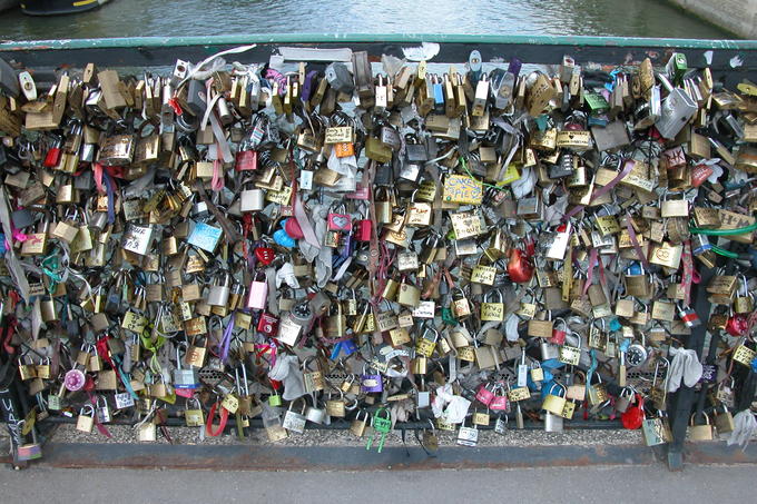 On a appris ton départ en rentrant de vacances alors on a pensé faire ça ; bien sûr d'abord on a pleuré longtemps ; puis ensuite, les jours qui suivent : on a pensé faire ça : attacher deux cadenas l'un à l'autre comme symbole d'amitié entre nos deux familles et les placer à cet endroit, au milieu des milliers de promesses... près de Notre-Dame ; t’es partie à treize ans renversée par une voiture... on a mis deux cadenas roses en cœur attachés l'un à l'autre avec plein de pensées et de prières pour toi ; un an après je suis repassée là en cherchant les cadenas, j'avais compté où je les avais placés : grille numéro treize... Je ne les ai pas retrouvés. T'es passée ou Joy ?... De toute façon, t'es passée où ?