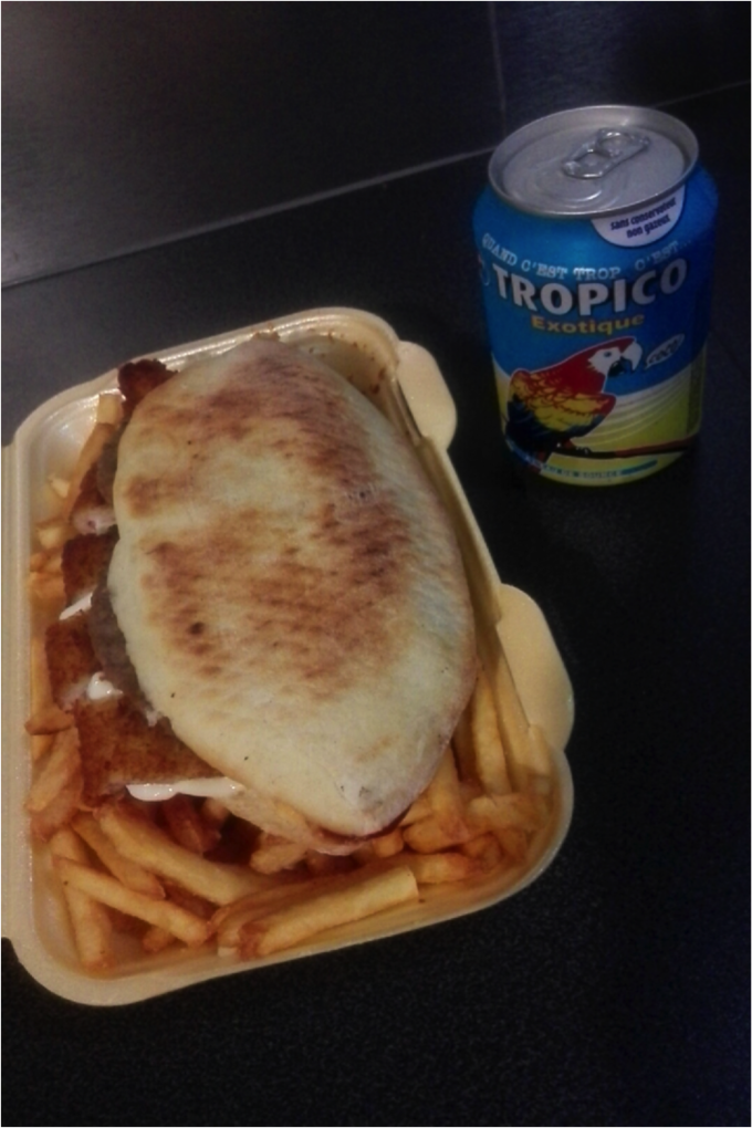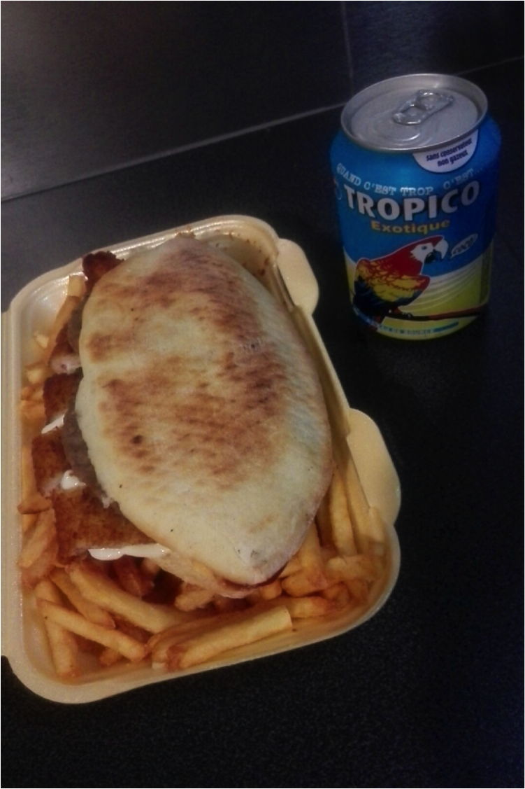 Un délice dont j’ai l’habitude, rempli de bonne humeur et de saveurs à pas d'heure. C'est un objet simple de la vie de tous les jours et que la plupart des gens consomment. Son bas prix d'environ 7 euros permet qu'il soit accessible et c'est un repas consistant malgré que ce ne soit pas de la grande cuisine, sa simplicité fait sa merveille.