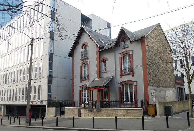 Située dans le centre-ville de Montreuil (93), cette maison est l'unique témoin de l'évolution urbanistique du quartier qui a vu naître ses dernières décennies de grands bâtiments administratifs et des bureaux. Enclavée entre le centre administratif communal et un immeuble de bureaux, elle représente pour moi l'exemple type de "mixité architecturale", c'est à dire mêler neuf et ancien dans un quartier ou une ville. Elle est aussi une résistante à l'urbanisation galopante que connaît toutes les villes du Monde, et je suis bien heureux de voir que de jolies bâtisses comme notre sujet résistent au genre contemporain, que je qualifierai de froid et carré.