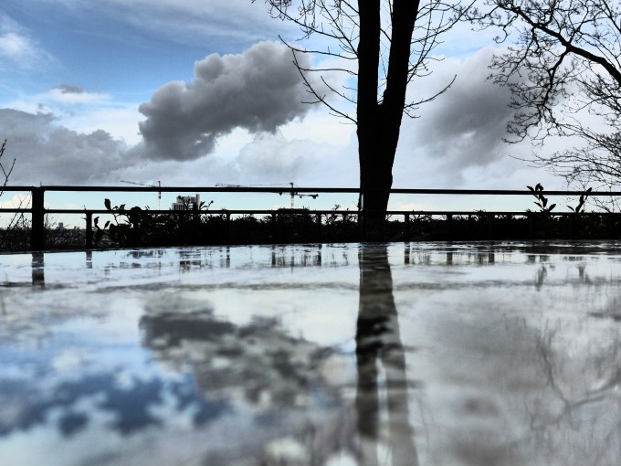 Lorsqu’elle arrive, les trottoirs brillent, les objets architecturaux reprennent de l’éclat, attrapent les reflets qui rendent le paysage mystérieux, curieux, sensible. Tel un miroir d’eau…