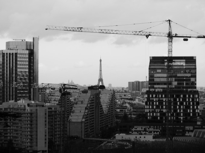 Au loin, cité parisienne avec sa célèbre tour Eiffel et en fond de tableau, le sacré cœur.