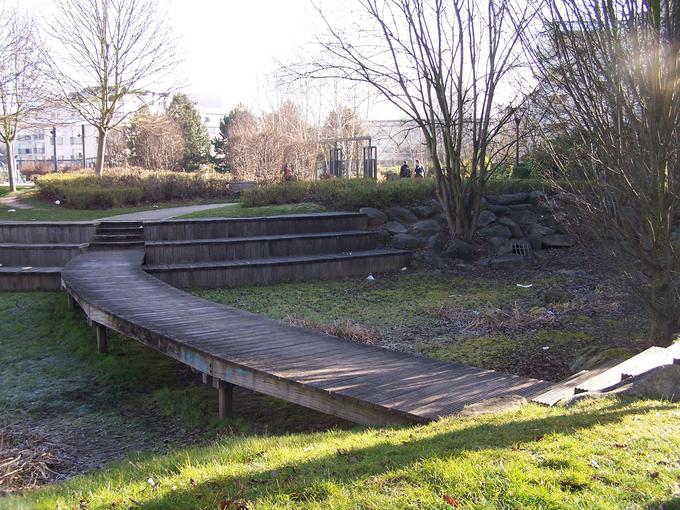 Ce lieu est un endroit public où adultes et enfants peuvent venir s'amuser, prendre du bon temps en famille. Ici, il y a des jeux pour les enfants,on peut en inventer d'autres: cache cache, chat ...et même devenir un pirate au milieu des rochers. On peut y faire du vélo,du roller,de la patinette et aussi s'y reposer. On peut s'y retrouver, s'y séparer, s'y exprimer, hurler, crier! C'est un lieu de vie, celui où j'ai grandi. C'est mon Noisy.